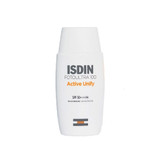 تکسچر ضد آفتاب اکتیو یونیفای بی رنگ ایزدین به صورت فلوئیدی بوده و به علت داشتن تکنولوژی فیوژن، پخش آسان و جذب سریعی دارد. این محصول یک ضد آفتاب سبک با جلوه مات و طبیعی برای انواع پوستها است که به مرور رنگ پوست را شفاف تر و شاداب تر میسازد.
