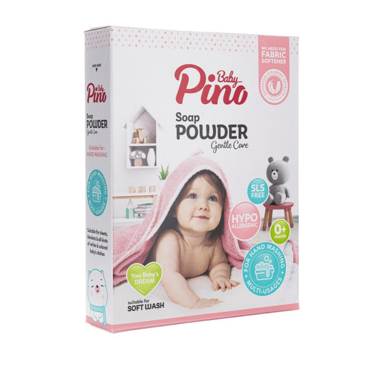 پودر صابون پینو بیبی با قدرت لکه بری فوق العاده بدون ایجاد حساسیت برای بدن نوزاد و کودک است و نیاز نرم کننده لباس ندارد این پودر صابون تولید شده از مواد طبیعی است و روی پوست ایجاد التهاب و خارش نمی کند و همچنین برای راحتی بیشتر و استفاده آسان تر دارای پیمانه است.این محصول با قدرت پاک کنندگی بسیار بالایی که دارد تمام لکه هایی که ممکن است رنگ پارچه را تغییر دهند از بین می برد و همچنین این محصول کاملا ضد حساسیت است